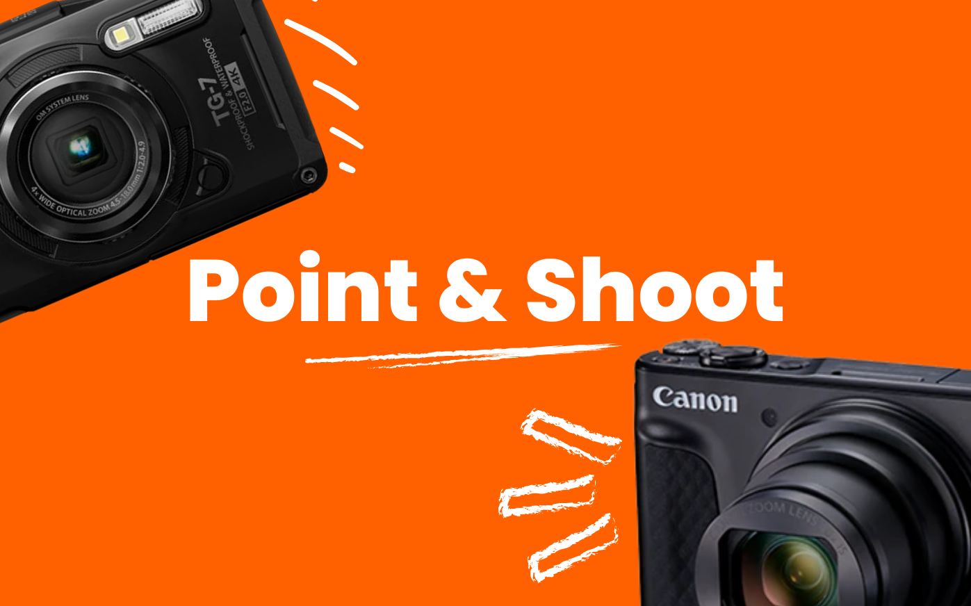 Discover our range of digital cameras designed for every photographer. From the rugged thrill of action cameras to the sleek versatility of mirrorless models and the professional power of DSLRs, our digital camera range caters to every adventure.