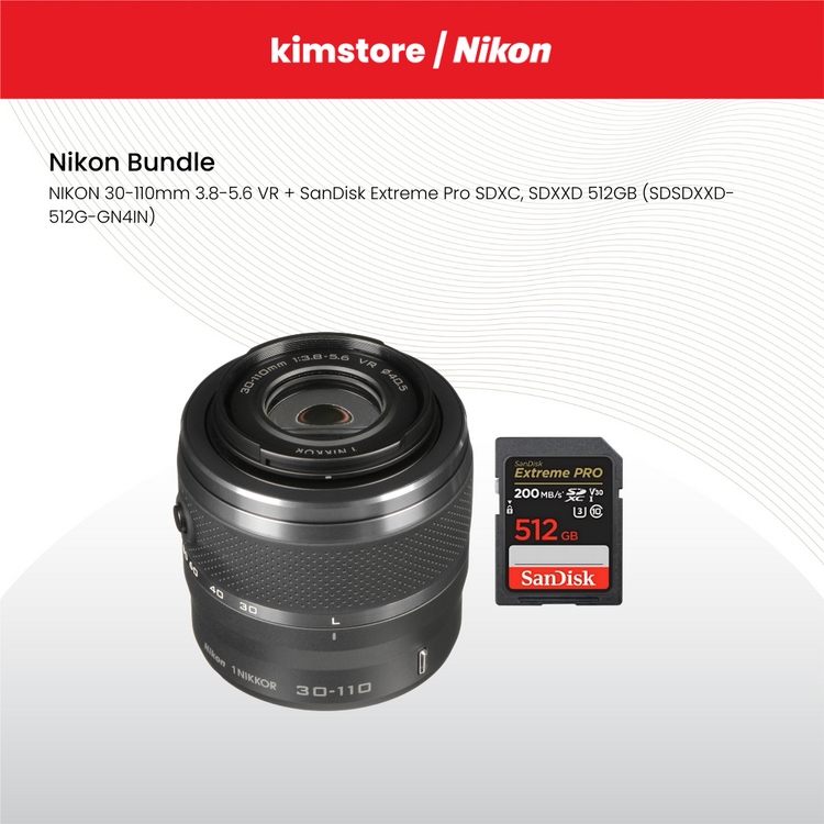 1. NIKON 30-110mm 3.8-5.6 VR + SanDisk Extreme Pro SDXC, SDXXD 512GB (SDSDXXD-512G-GN4IN)