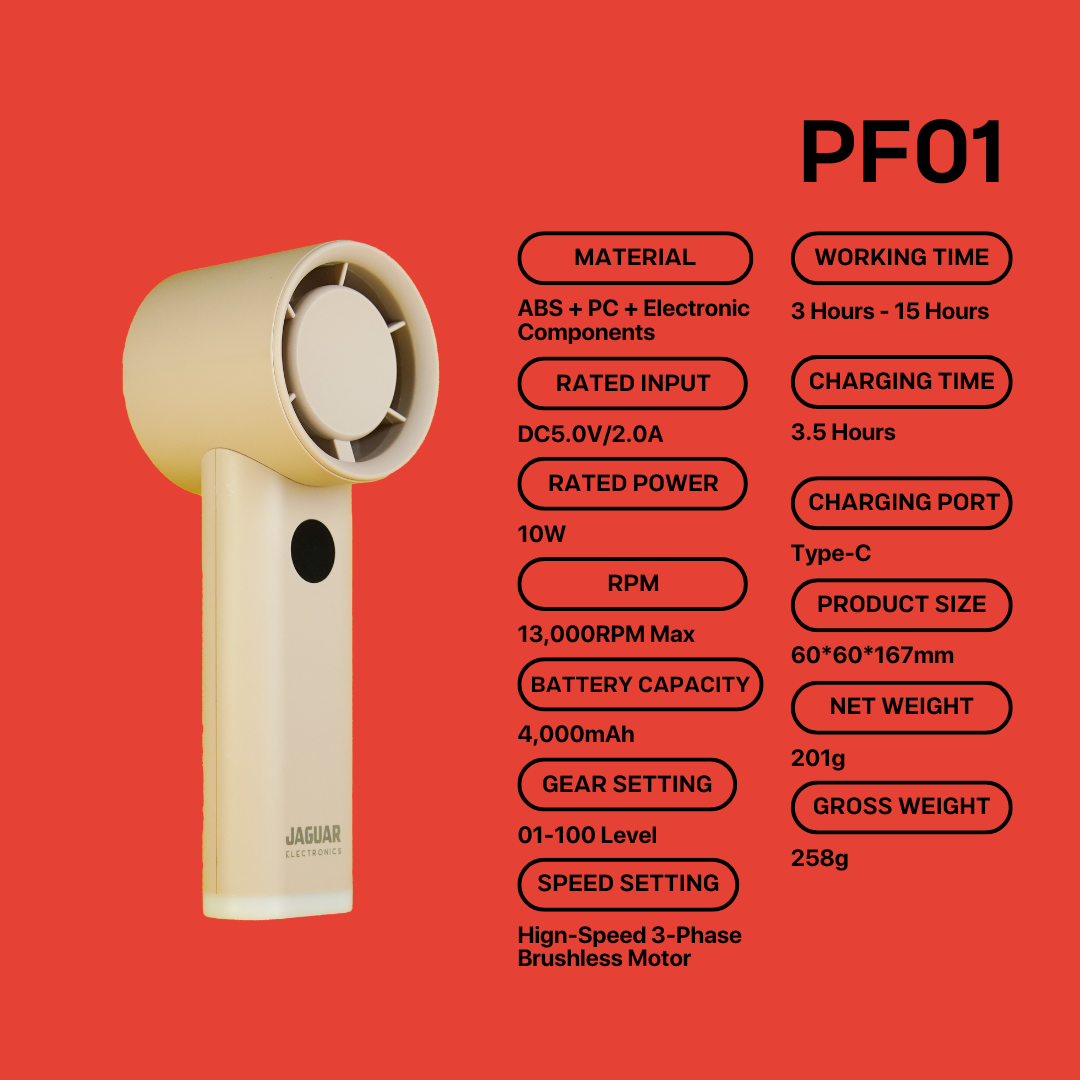 Jaguar Electronics PF01 Handheld Fan with LED Light