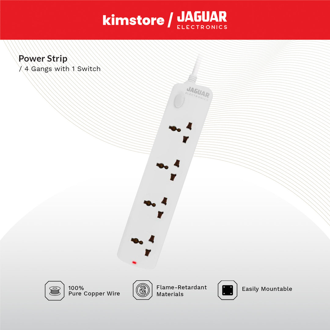 Jaguar Electronics Power Strip 4-Gang with 1 Switch