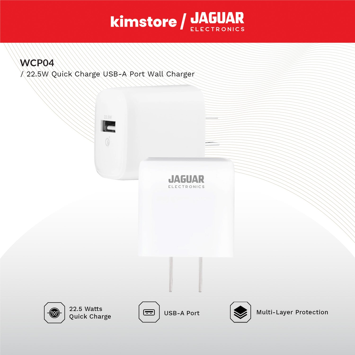 Jaguar Electronics WCP04 Wall Charger 22.5W Quick Charge USB-A Port