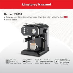 Kazumi KZ-801 BrewMaster 1.8L Retro Espresso Machine with Milk Frother