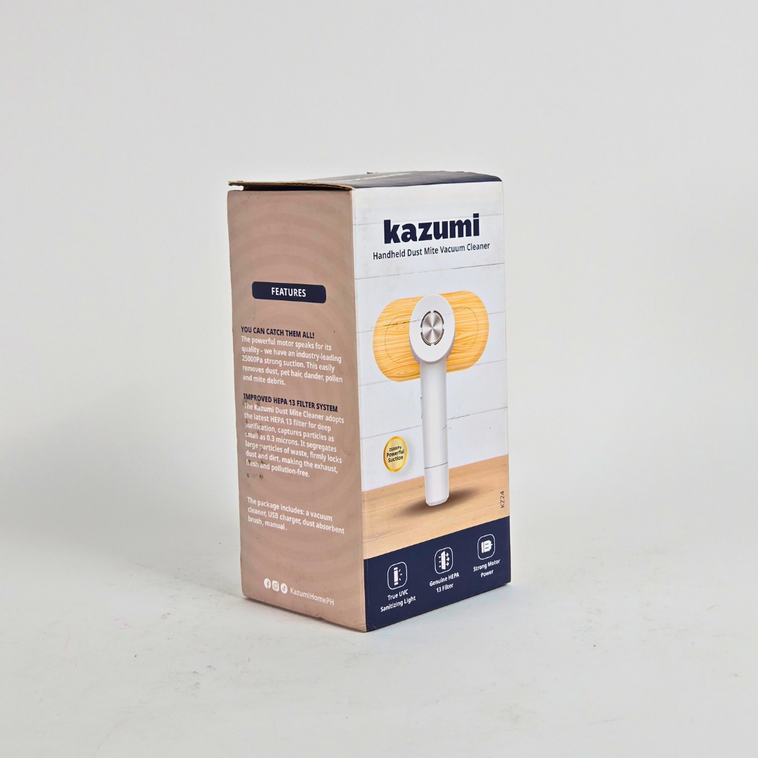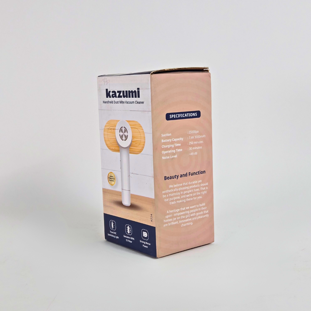 Powerful Suction - 25000Pa large suction, instantly sucks away all the dirt that is shaken out. Upgraded Hepa Filter System - The Kazumi dust mite adopts the latest HEPA filter element for deep purification, captures particles as small as 0.3 microns, isolates large particles of garbage, firmly locks dust and dirt, and exhaust is fresh and pollution-free.