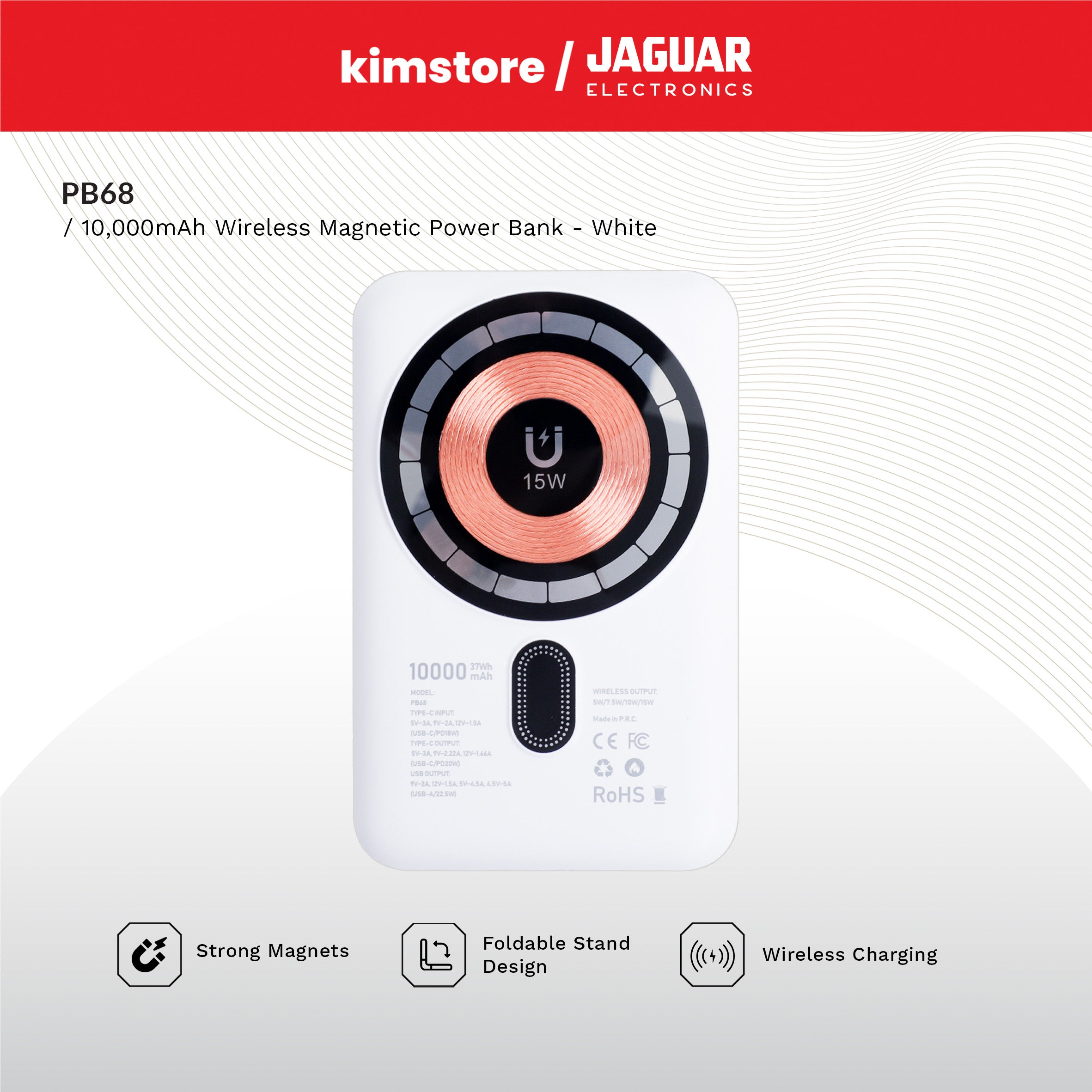 [Open Box] [B] Jaguar Electronics Pb68 Magnetic Wireless Power Bank With Foldable Stand Pd20W 10000Mah - White