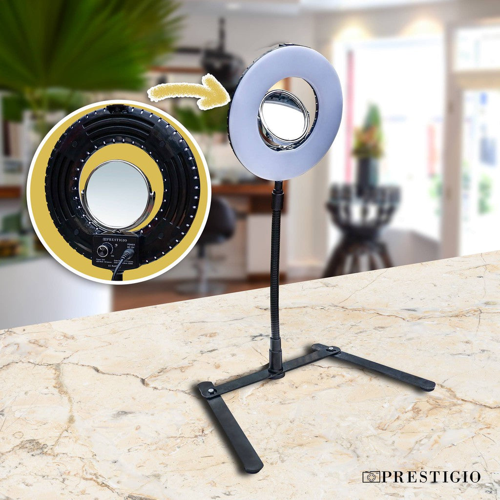 [Open Box] [B] Prestigio 8" Tabletop Ringlight With Double Sided Vanity Mirror WhIte